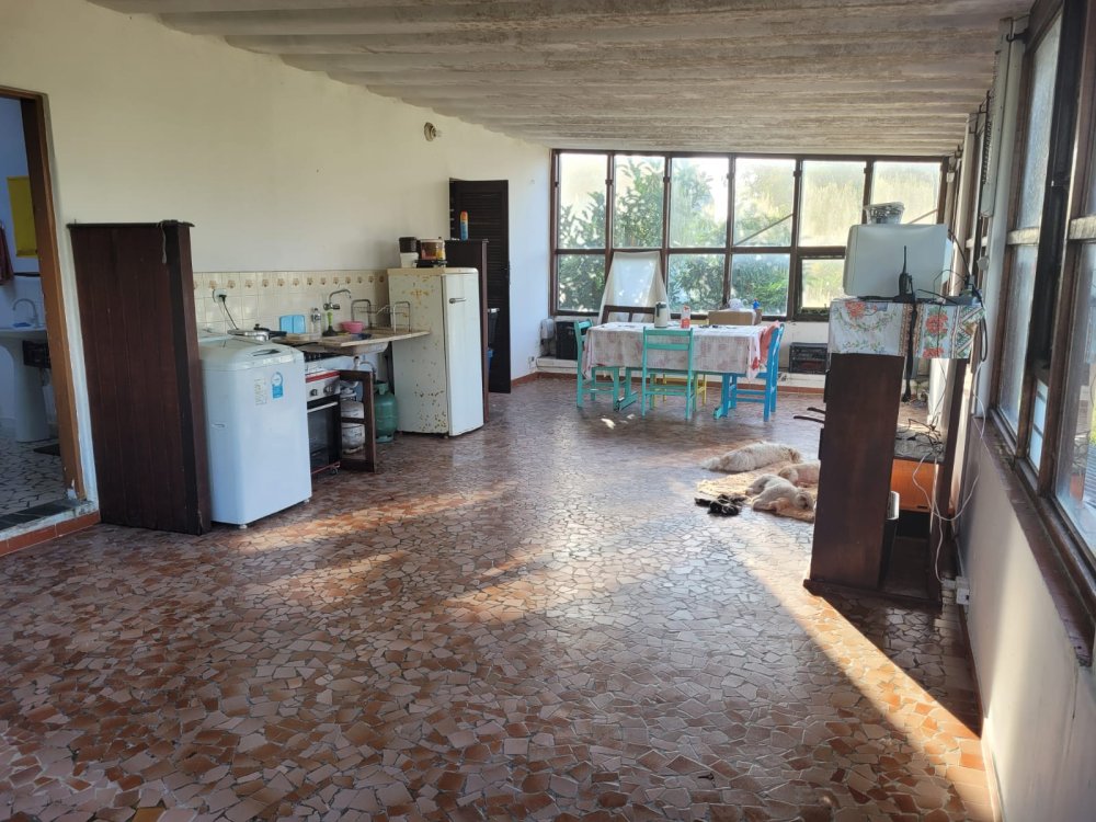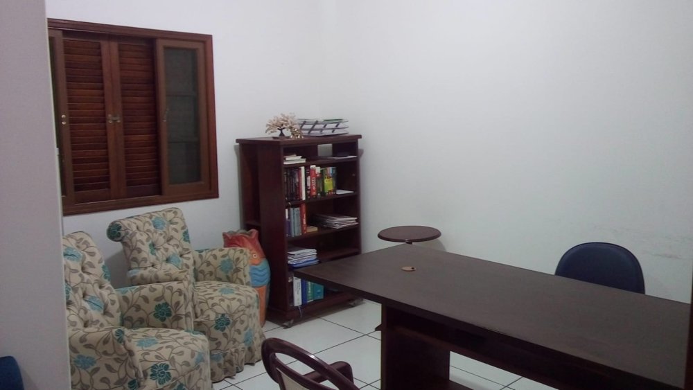 SOBRADO há 400 mts da praia onde na parte de cima tem um salão de ponta a ponta do terreno, com cozinha e a.s. aberta tipo americana, 1 banheiro,3 Dorms.c/ 1 suíte e mais um solarium. No térreo tem as 5 vagas de carro, deposito, area de lazer coberta com churrasqueira e forno, sala com 3 ambientes, cozinha, lavabo, 1 banheiro.