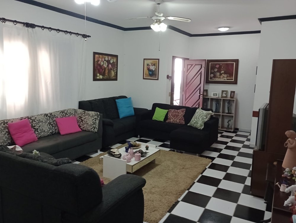 Casa com 3Dorms c/1 suite – Sala 2 ambientes – Cozinha Grde. Edicula c/ 2 dorms c/1wc – Espaço coberto c/churrasq., Lavanderia, quintal grde ao redor da casa e Gragem p/ 4 autos.